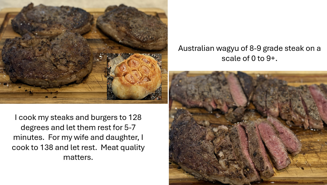 Given I am a chef that has cooked his meals his entire life, I asked him what he wanted for his Last Supper before he left for college. He said, “Ribeye Wagyu steak, mashed potatoes, and veggies.” I bought level 8-9 Wagyu from the Australian farm, Margaret River.