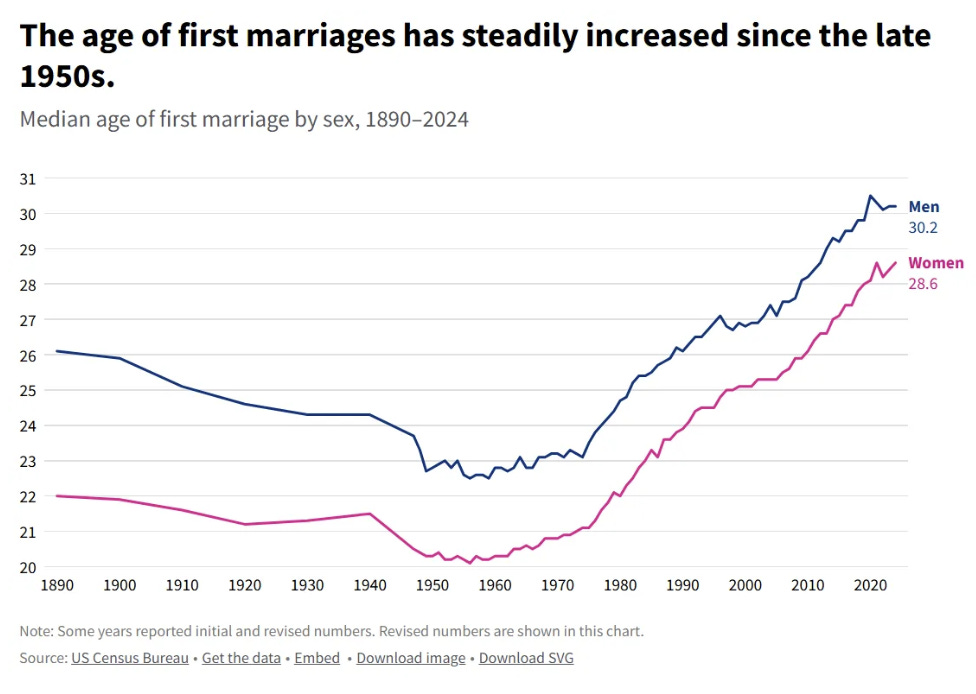 Fewer young adults are achieving economic and family milestones typically associated with adulthood, according to a recent working paper from the U.S. Census Bureau. The paper looked at nationally representative data from 2005 and 2023 to examine changes in young adults' experiences reaching major life events, such as moving out of their parents' house, getting married, and having a child. Researchers found a dramatic shift in the attainment of these milestones in recent decades. The reason for this, according to the paper, is that more young adults between the ages of 25 and 34 are facing economic barriers compared with previous generations. Changing societal attitudes around family formation are also contributing to the sharp decline in the share of young people reaching what the U.S. Census Bureau considers to be "key milestones." According to the working paper, "Changes in Milestones of Adulthood," almost half of all young adults in 1975 had reached four milestones associated with adulthood: moving out of one's parents' home, getting a job, getting married and having a child. Five decades on, that progression has changed dramatically. The share of young adults that have followed the traditional pathway to adulthood has dropped to less than a quarter, according to the paper. I recently wrote a piece about how changing behaviors are impacting the economy, and this article is yet another example.
