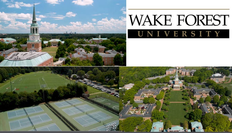 The campus at Wake Forest is stunning with huge fields and beautiful trees in the school with 5,500 undergraduate students. The grounds are immaculate, and I found the kids incredibly friendly and well mannered.