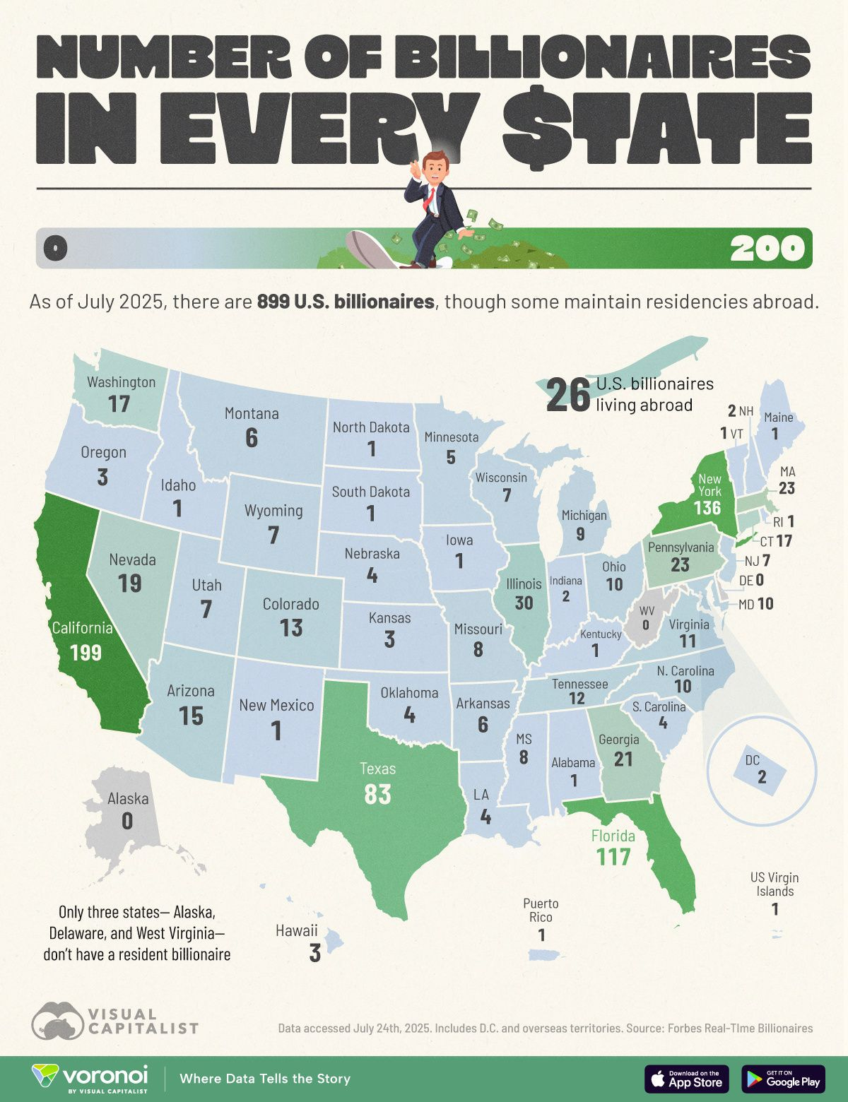 The number of Americans earning at least $1 million a year has more than doubled in a decade—but these seven-figure households are far from evenly spread, with coastal states claiming the biggest share of the moneyed elites. Yahoo News recently examined the latest available income data from the Internal Revenue Service for the year 2022 to find out which states had the greatest concentration of households with adjusted gross incomes of at least $1 million. That figure does not include home equity, stocks, bonds, 401(k) retirement savings plans, or other types of investments, which are part of a person's net worth as opposed to earned income. The analysis revealed that nationally, roughly 800,000 taxpayers had an annual income of $1 million or more, up from 470,000 in 2013. Notably, even that higher figure accounts for roughly 0.5% of the 153 million income tax returns filed in 2022, according to TaxFoundation.org. Among all 50 states, Connecticut had by far the biggest share of affluent earners, boasting close to 90 million-dollar tax returns per 10,000 filers. Massachusetts had more than 76 million-dollar earners per 10,000 in 2022, while New York recorded over 71 seven-figure returns. On a related note, I have the number of billionaires in every state in the 2nd chart.